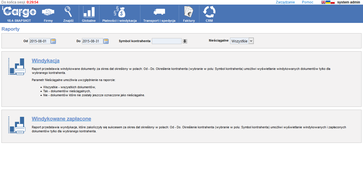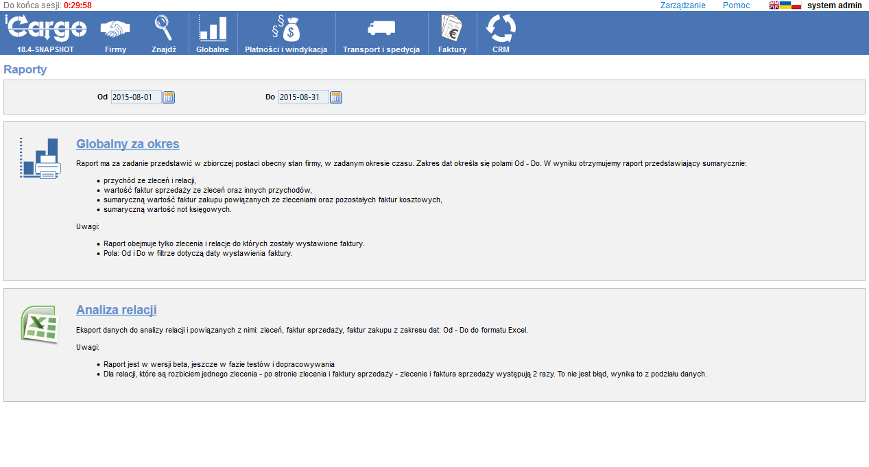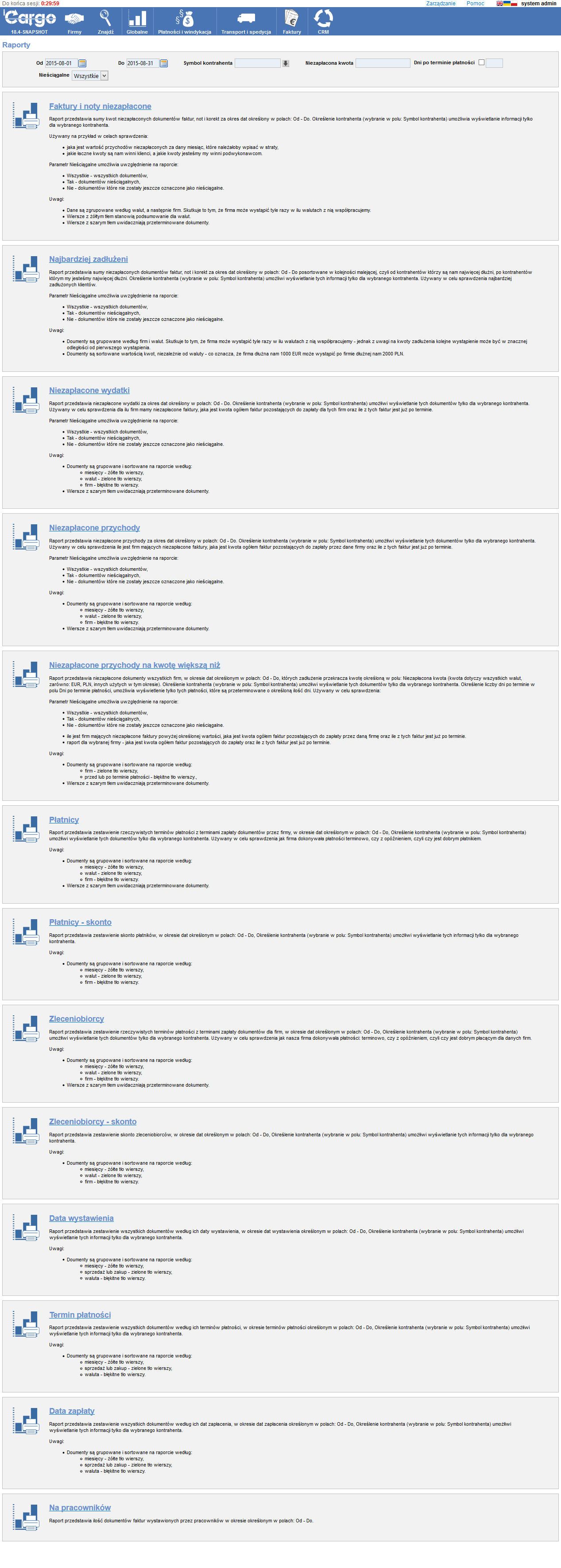 Obrazują stan płatności faktur za dany okres, zaległe płatności w rozbiciu na spedytorów itp.