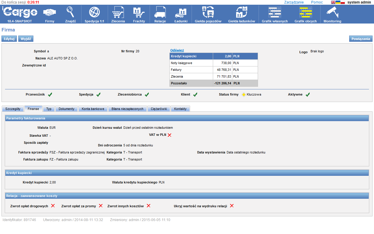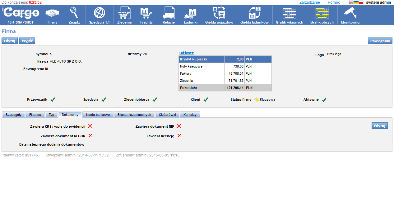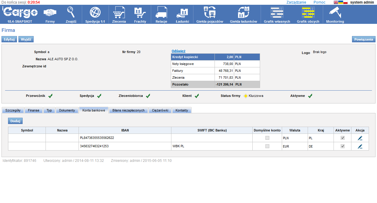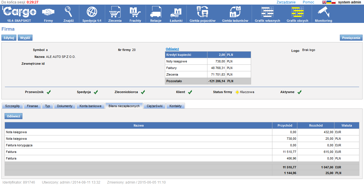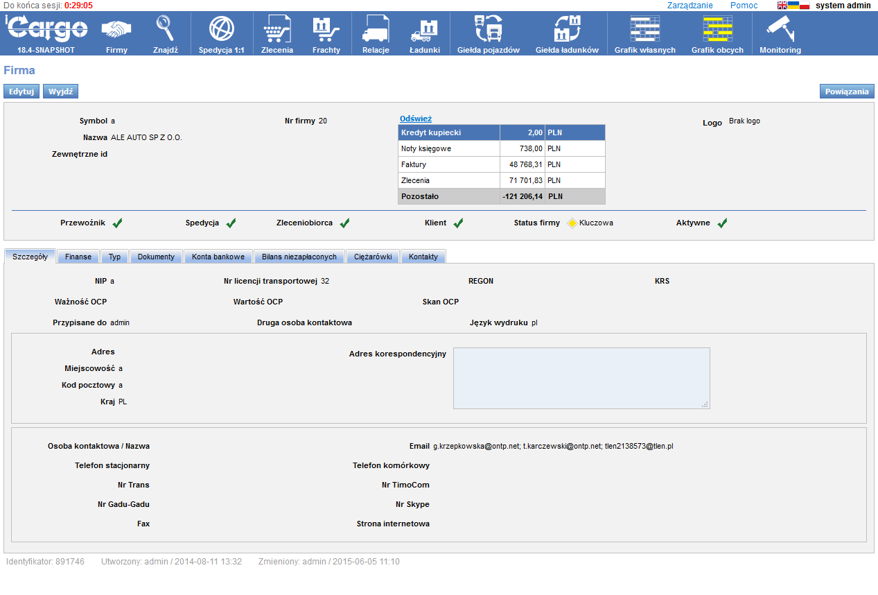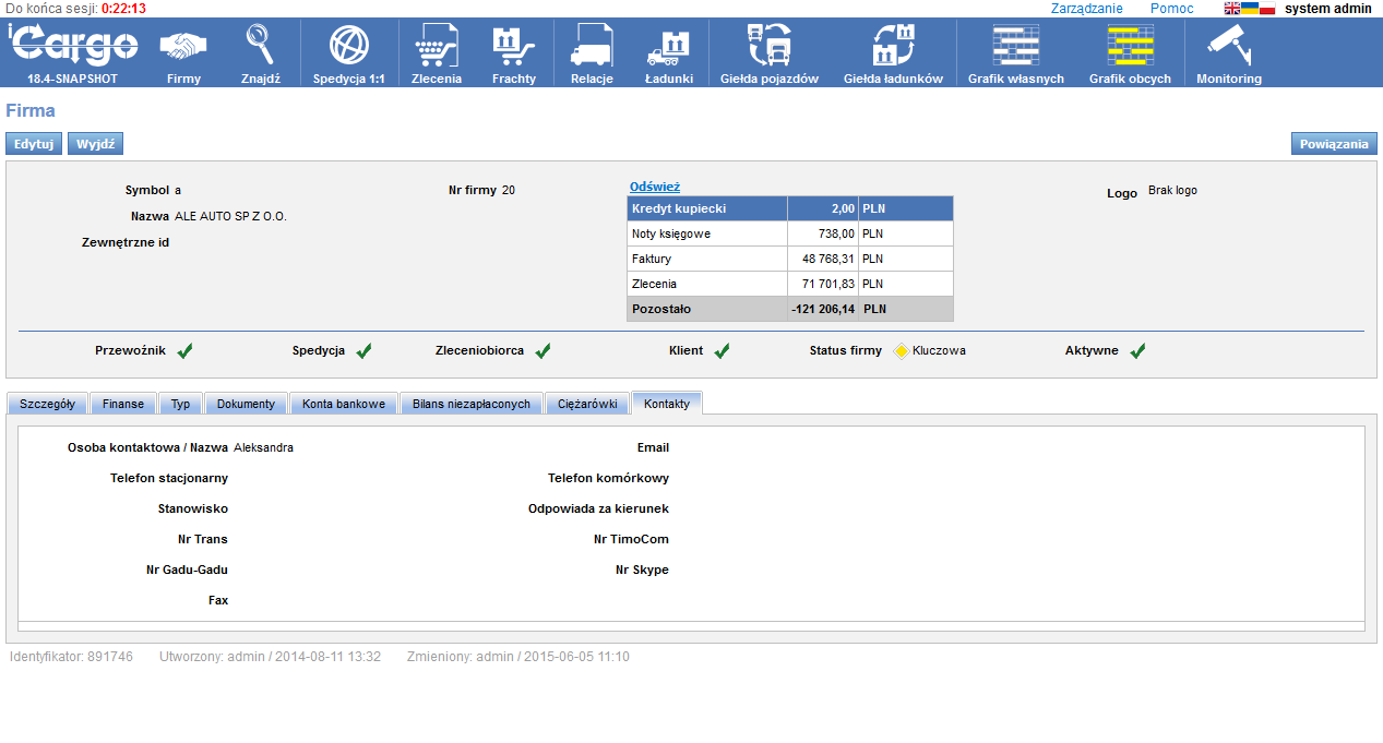 Szczegóły kontrahentów: konta, pojazdy, bilans. Obsługa czarnej listy