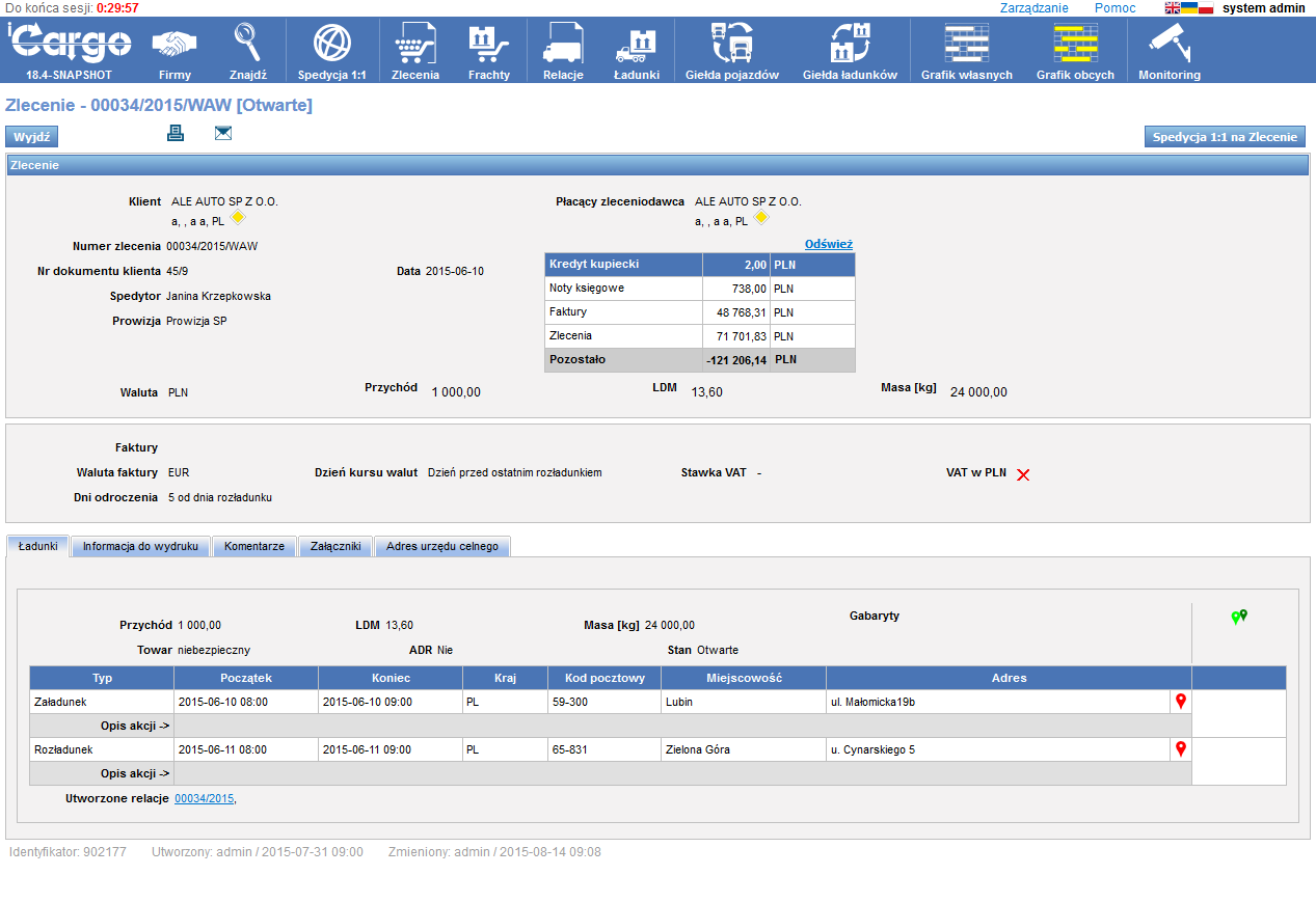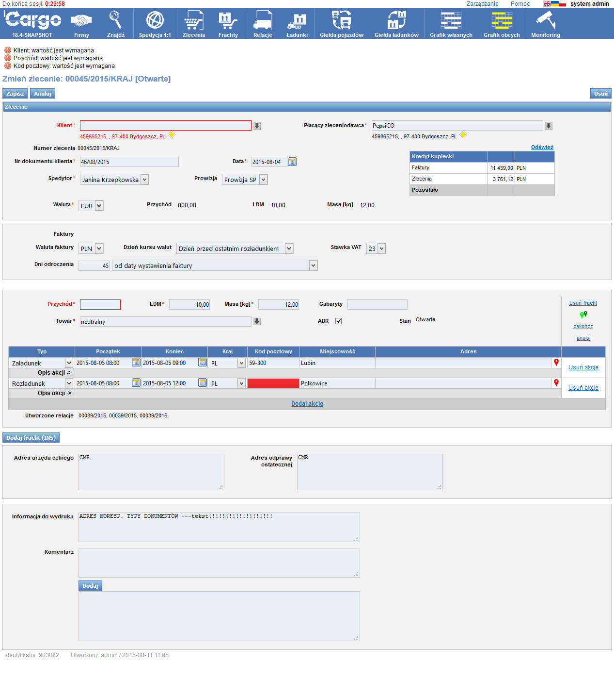 - Elastyczność realizacji: System umożliwia obsługę zarówno wariantów prostych (Zlecenie = Relacja), jak i złożonych (podział zlecenia na wiele relacji lub łączenie kilku zleceń w jedną relację).