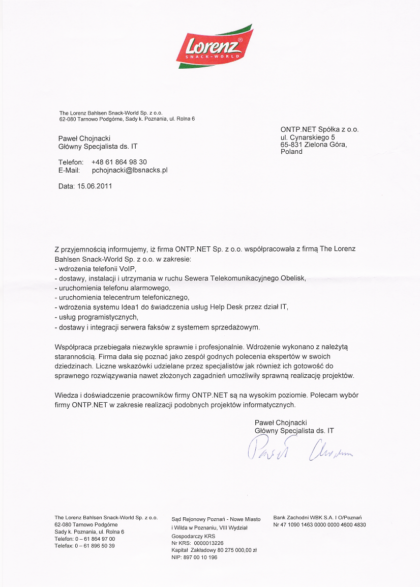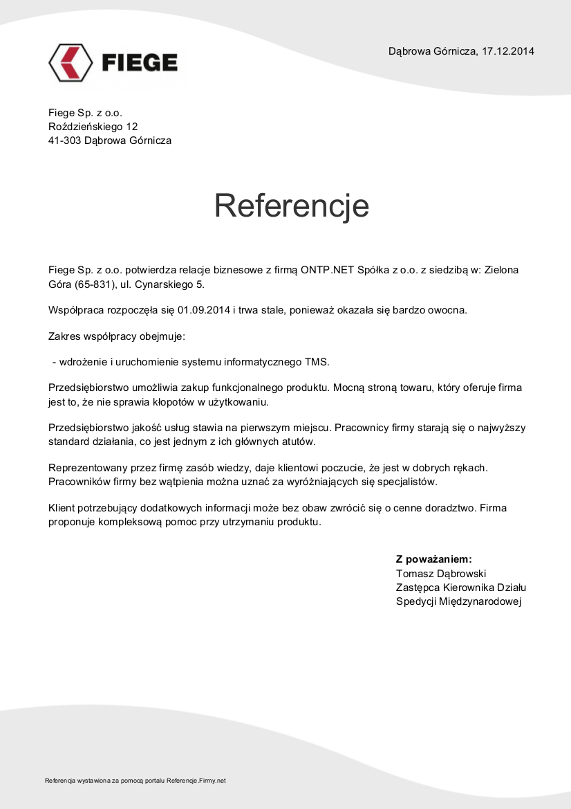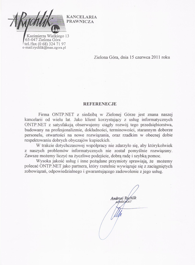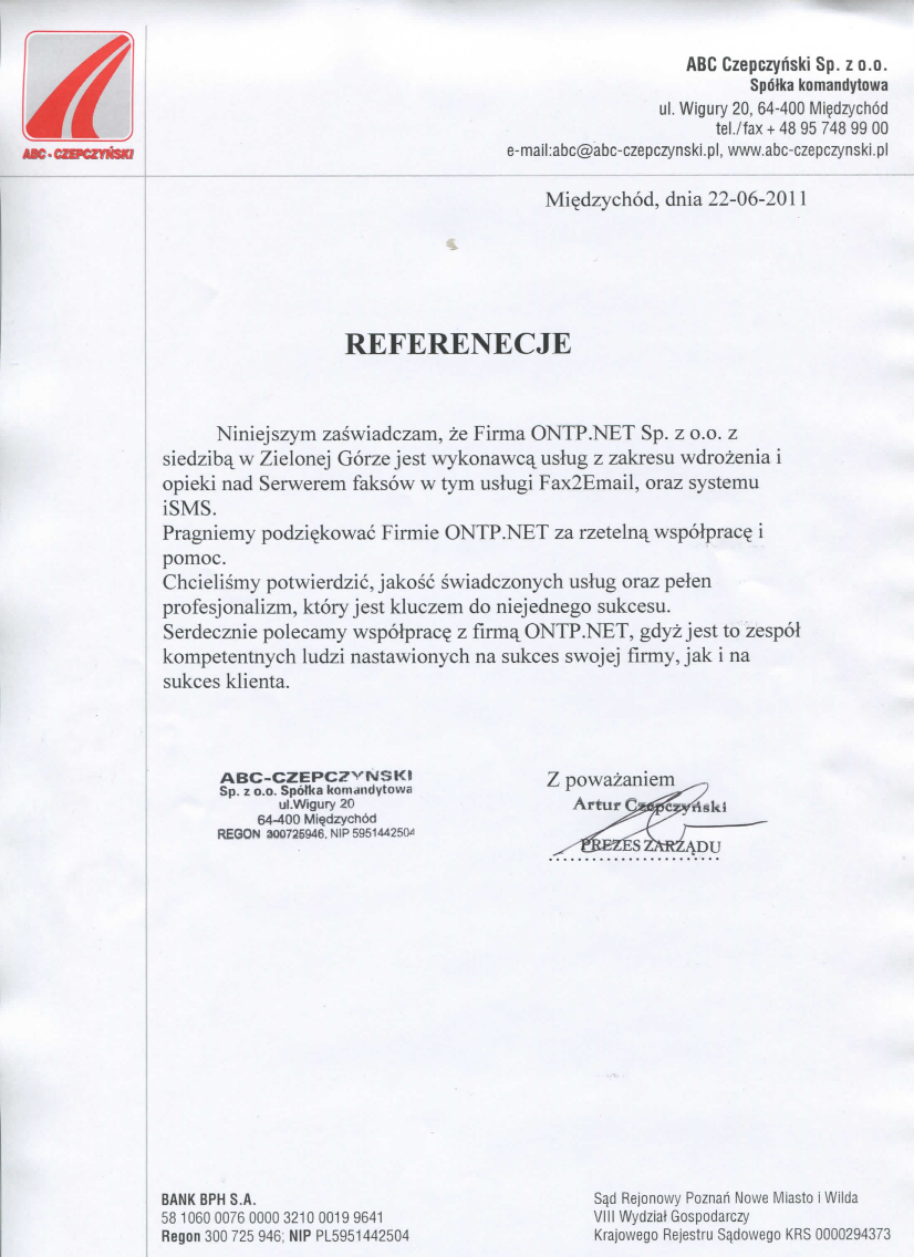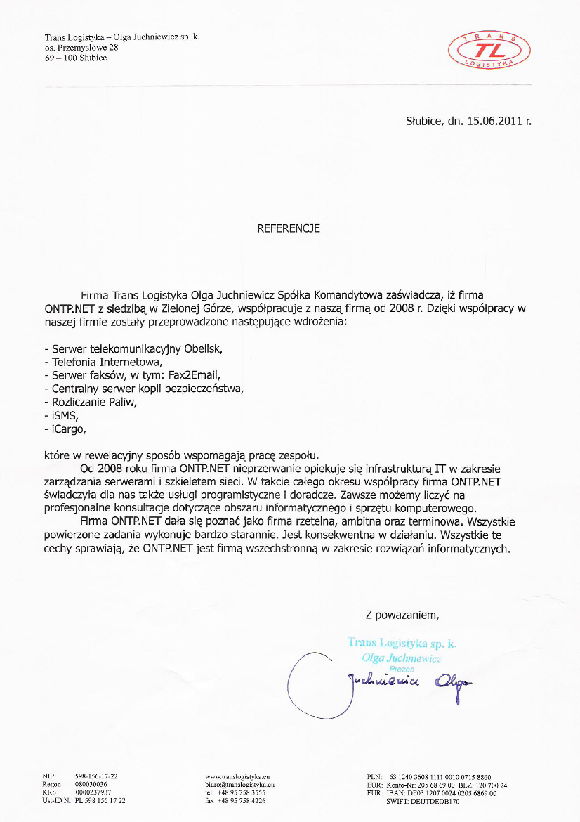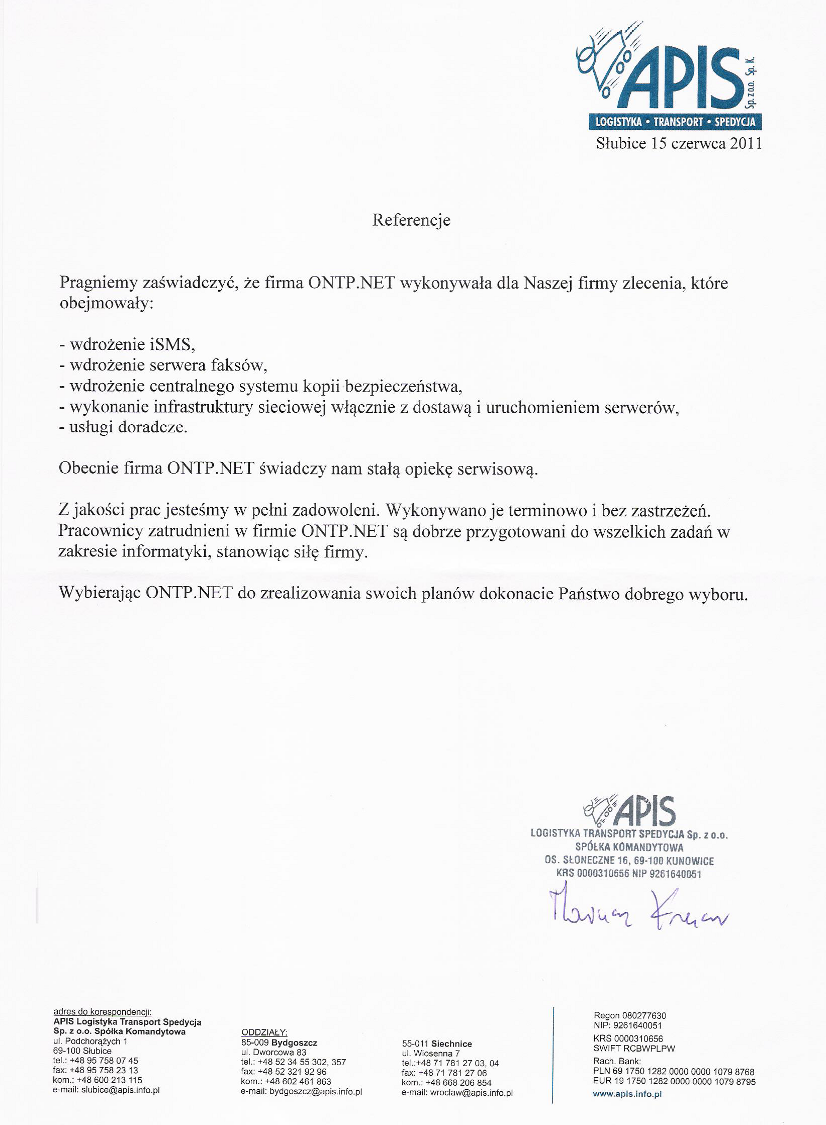 Zobacz także referencje wystawione firmie ONTP.NET Sp. z o.o.