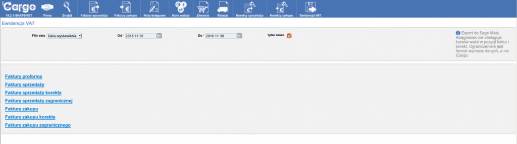 Więcej informacji na temat importu danych z iCargo do Systemów Finansowo Księgowych Sage Symfonia znajdziecie Państwo w Podręczniku użytkownika iCargo na stronie Instrukcje.
