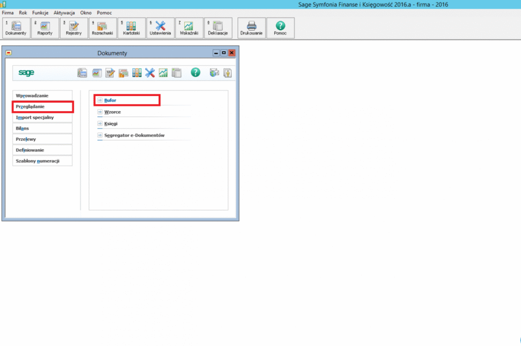 Po zapisaniu dokumentów można już przejść do trybu podglądu; żeby to zrobić wybieramy pozycje Przeglądanie → Bufor