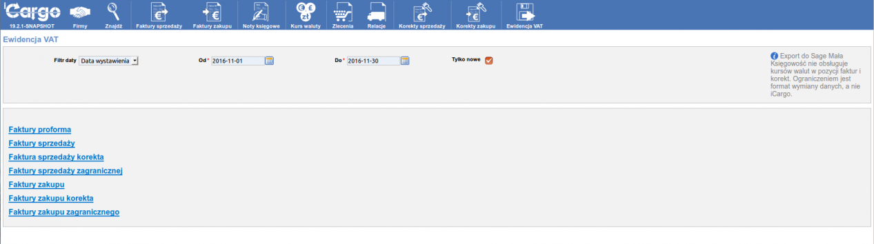 Więcej informacji na temat importu danych z iCargo do Systemów Finansowo Księgowych Sage Symfonia znajdziecie Państwo w Podręczniku użytkownika iCargo na stronie Instrukcje.