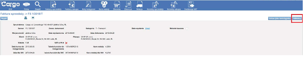 - Przejść do modułu faktur i odblokować odpowiednią, konkretną fakturę