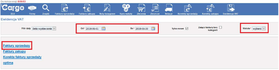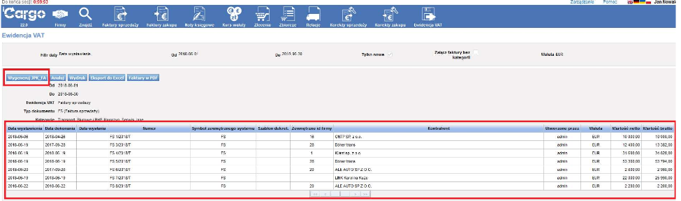 Do pliku JPK_FA zawsze eksportowane są wszystkie faktury widoczne na liście faktur Ewidencji VAT.