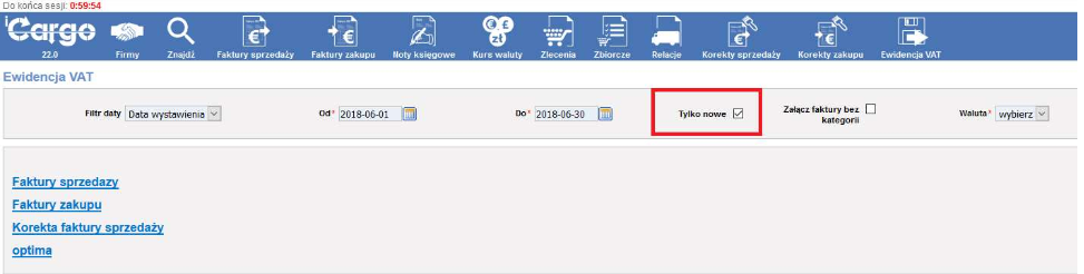 Do pliku JPK_FA zawsze eksportowane są wszystkie faktury widoczne na liście faktur Ewidencji VAT.